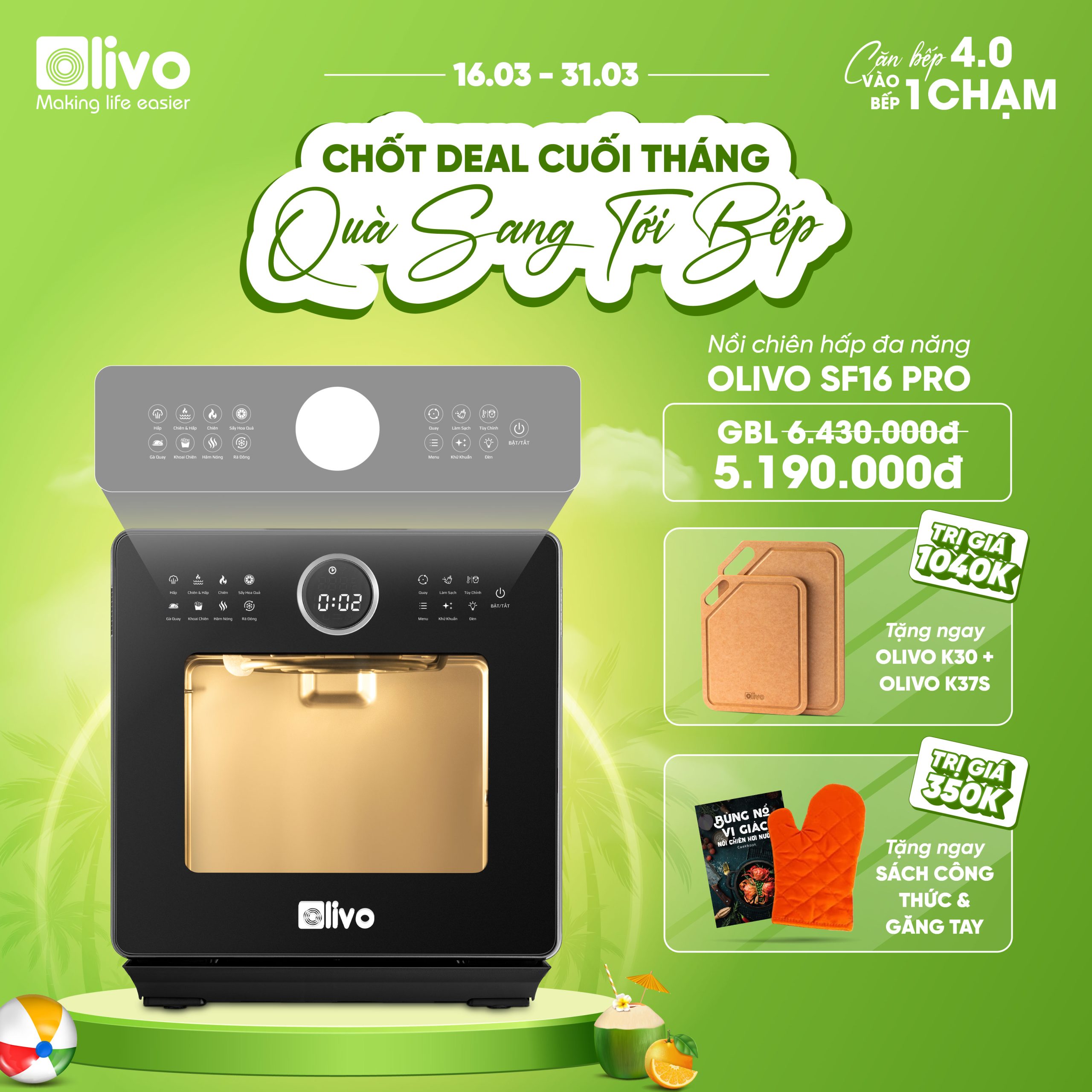 ƯU ĐIỂM VƯỢT TRỘI CỦA NỒI CHIÊN HẤP ĐA NĂNG OLIVO SF16 PRO